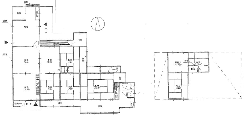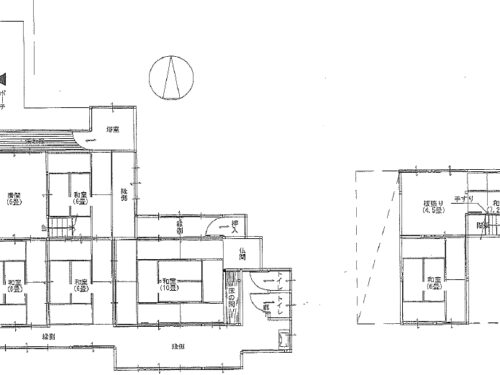 DK8畳 1階 その他10畳 1階 和室10畳 1階 和室6畳 1階 和室6畳 1階 和室6畳 1階 和室4.5畳 2階 和室6畳 2階 玄関・炊事場の一部は土間 |